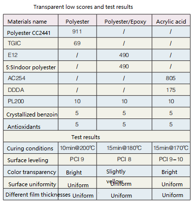2.Application test of acrylic resin in powder coating