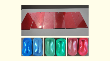 The test direction is to use GMA acrylic resin + DDDA powder system as the base powder, spray it with aluminum powder and pearlescent pigment of different particle sizes, and compare the differences in the coating surface.